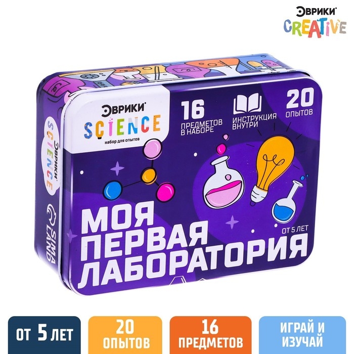 Яркая и удобная металлическая упаковка позволит переносить мини-лабораторию и проводить опыты в любых условиях!