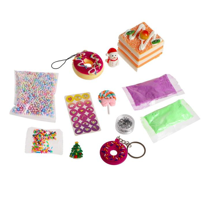 Набор состоит из коробки с 12 окошками. Новый день — это новое окошко, в котором находятся материалы для изготовления лизуна, игрушки-сюрпризы, шарики-растушки и многое другое.