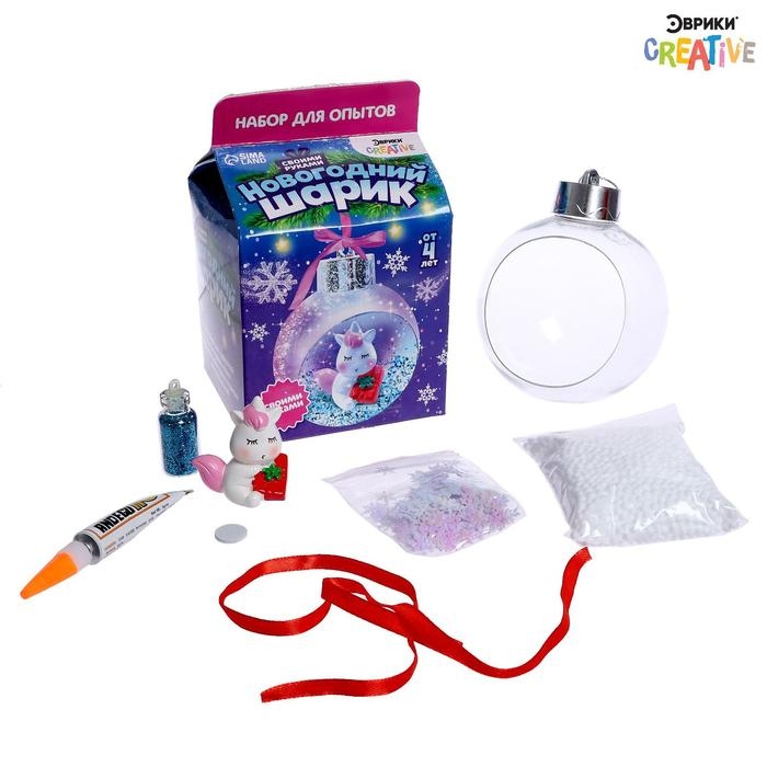 С новогодним набором для опытов ребёнок самостоятельно сделает праздничное украшение с милым единорогом.
