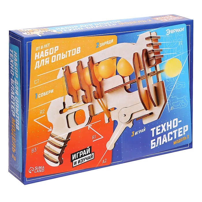 С набором для опытов торговой марки «Эврики» серии «Техно» ребёнок сконструирует действующую модель бластера! Техно-бластер после сборки стреляет пластиковыми шариками, а весь механизм работает с помощью канцелярских резинок!
