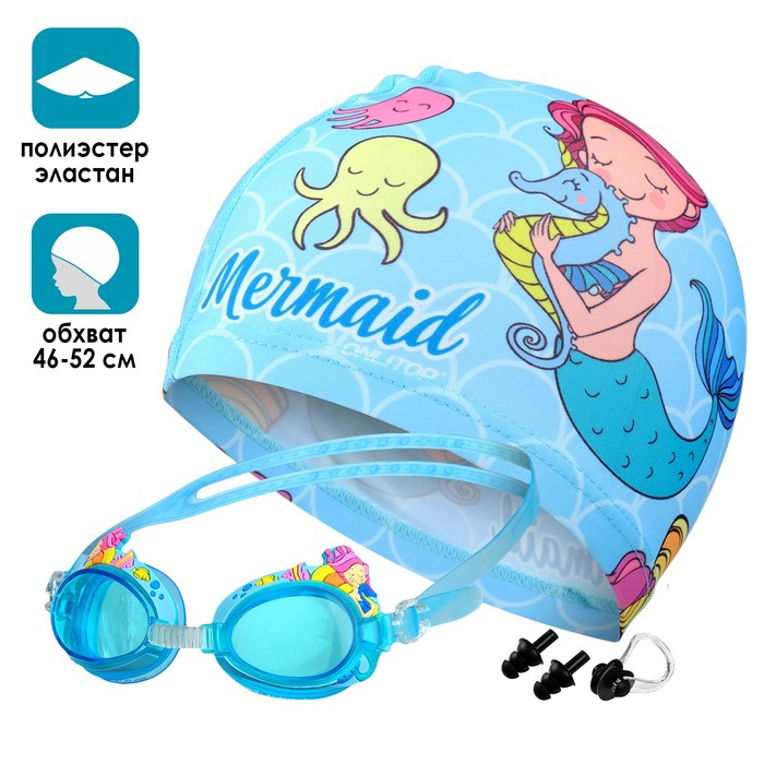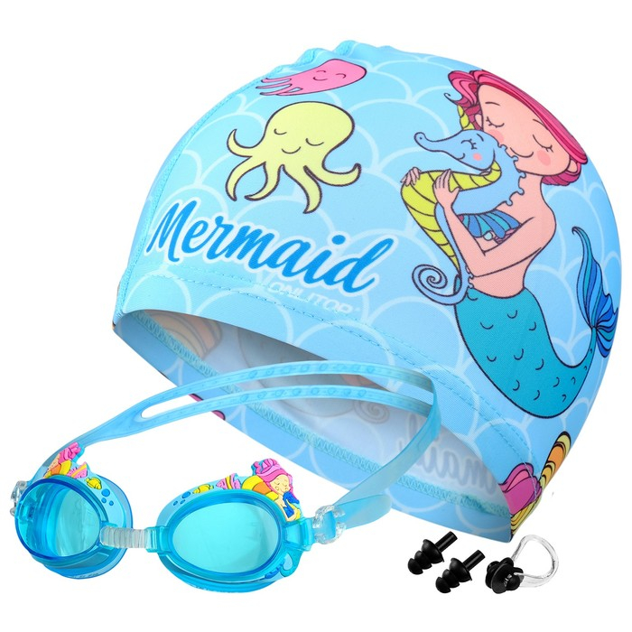 Набор для плавания детский ONLYTOP «Русалка»: шапочка, очки, беруши, зажим для носа
