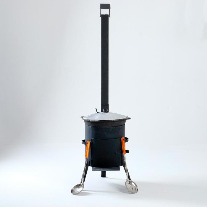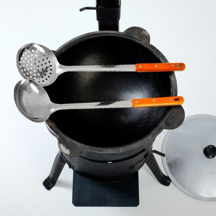 Набор для плова 4 предмета, казан 8л, печь под казан, поварешка 42см, шумовка 43см