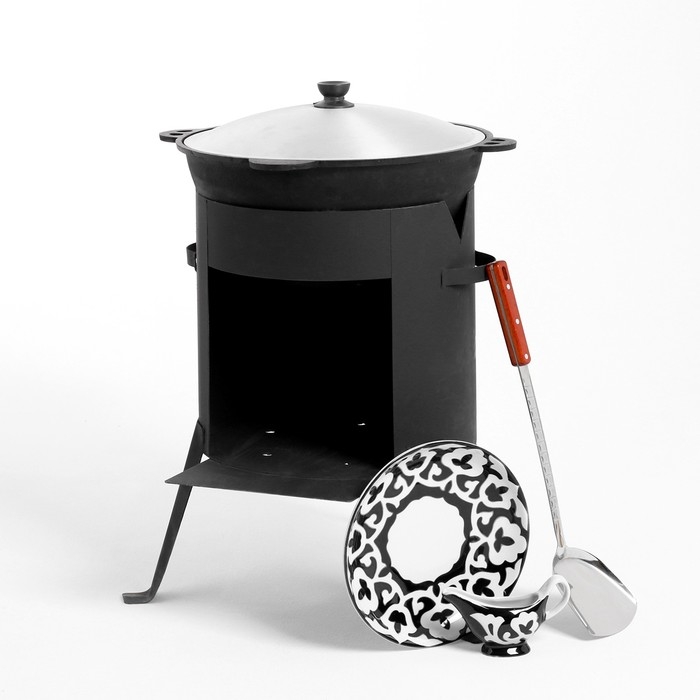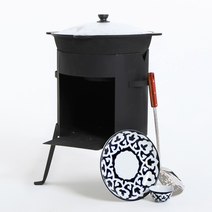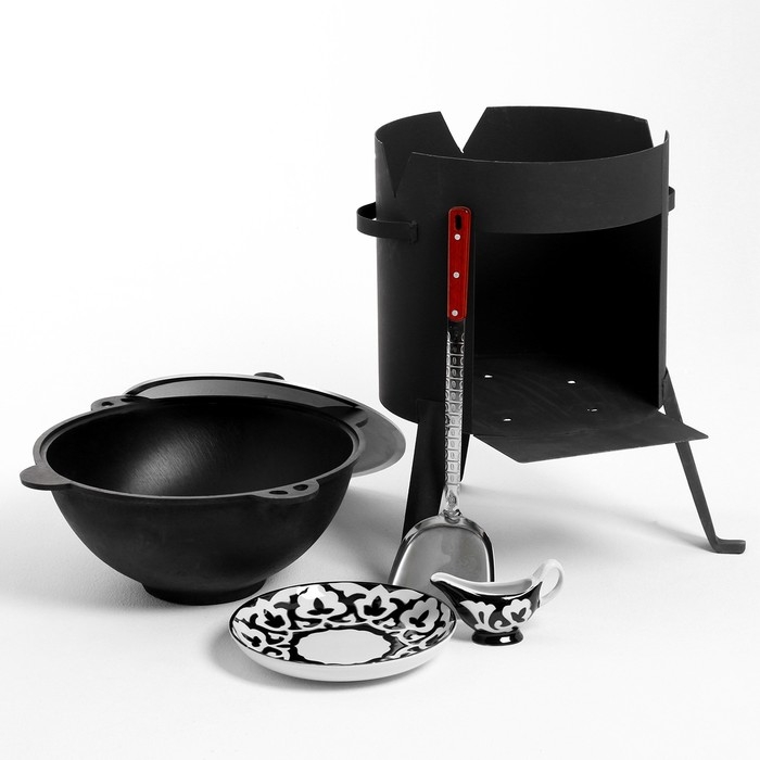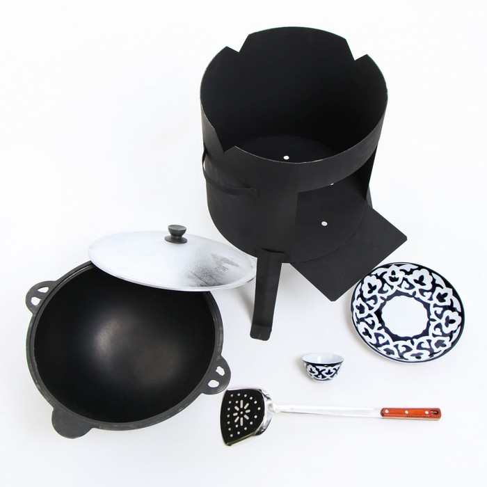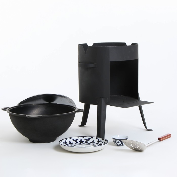Набор для плова 5 предметов, казан 10л, печь под казан, соусник, ляган 28см, шумовка 45см