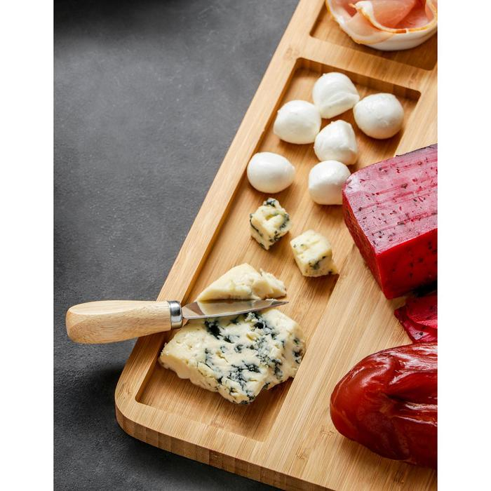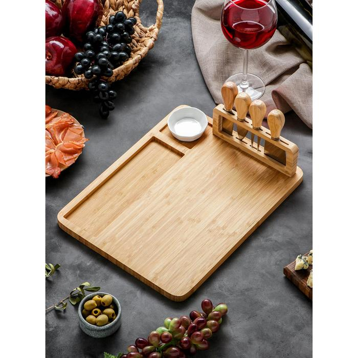 Набор для подачи сыра Доляна «Маасдам», 4 ножа, соусник, бамбук
