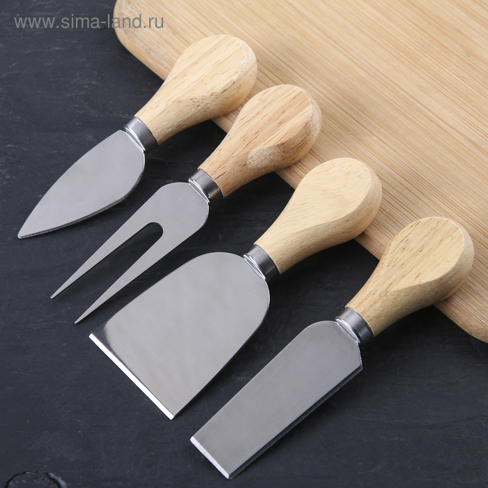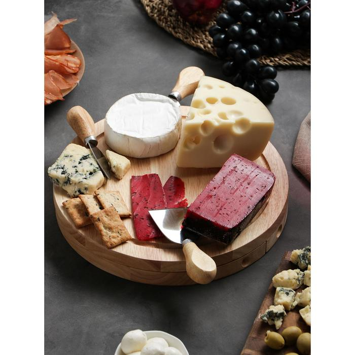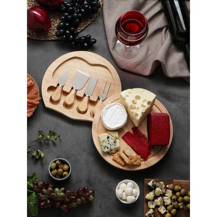 Набор для подачи сыра, доска из дуба 25×25×3,5 см, 4 ножа для сыра