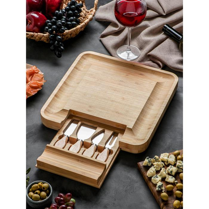 Набор для подачи сыра «Маасдам», 4 ножа, бамбук