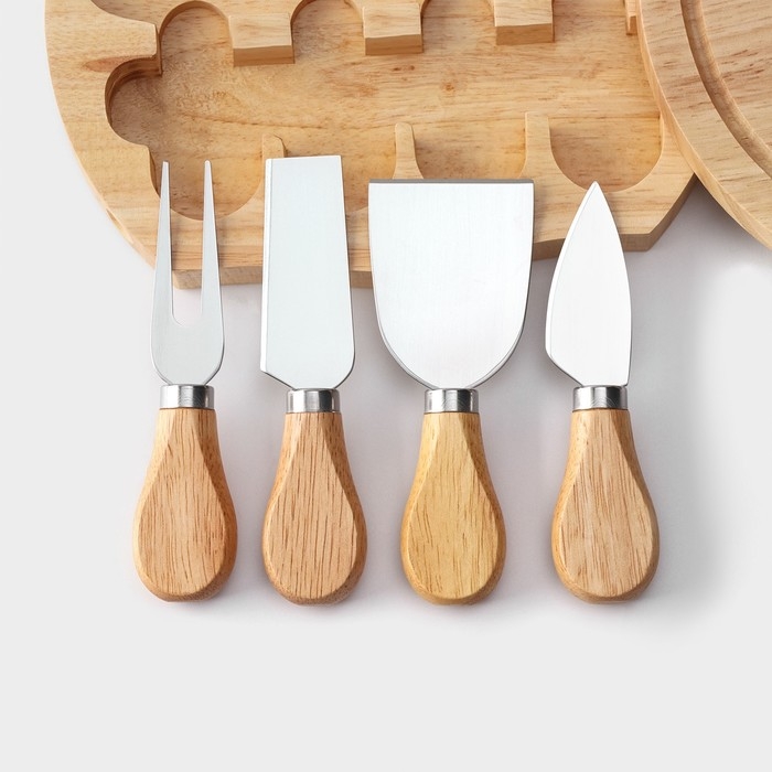 Набор для подачи сыра Magistro, 4 ножа, доска, 19,5×19,5×3,5см, дуб