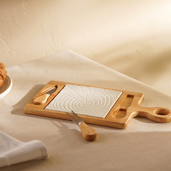 Изысканное сочетание минимализма и функциональности — набор для подачи сыра «Тренто» станет вашим незаменимым помощником при организации стильных и уютных вечеров. Этот комплект, включающий в себя фарфоровую доску, деревянную подставку, нож и вилку, создан для того, чтобы ваши сырные дегустации стали настоящим гастрономическим ритуалом.