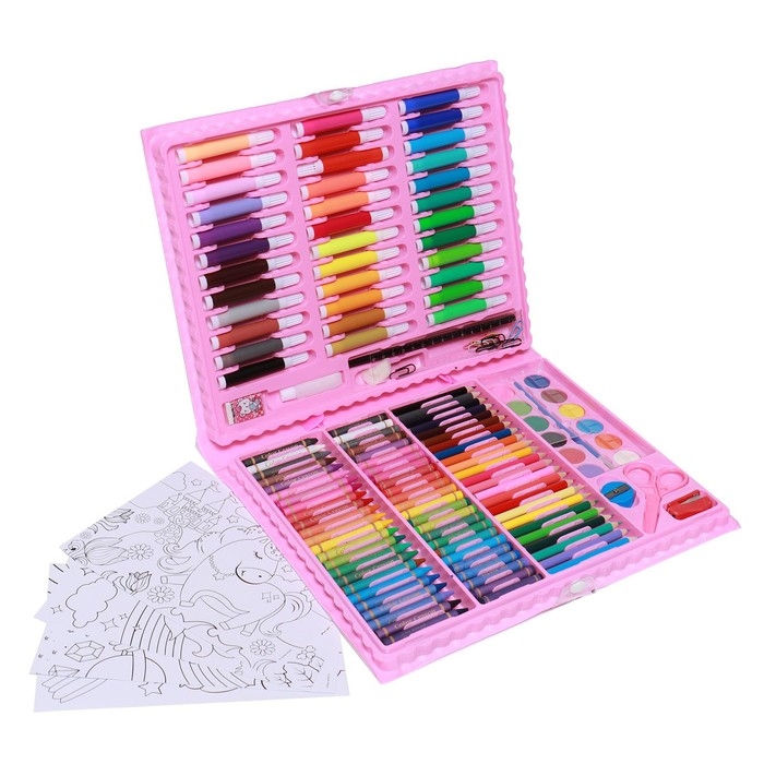 Такой набор станет настоящим подарком для художника. Рисуйте, создавайте шедевры с помощью маркеров, восковых мелков, красок и многого другого!
