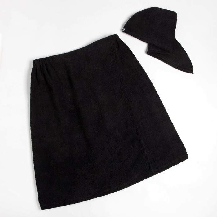 Набор для сауны Экономь и Я:полотенце-парео 68*150см + чалма, цв.черный, 100%хл, 320 г/м2
