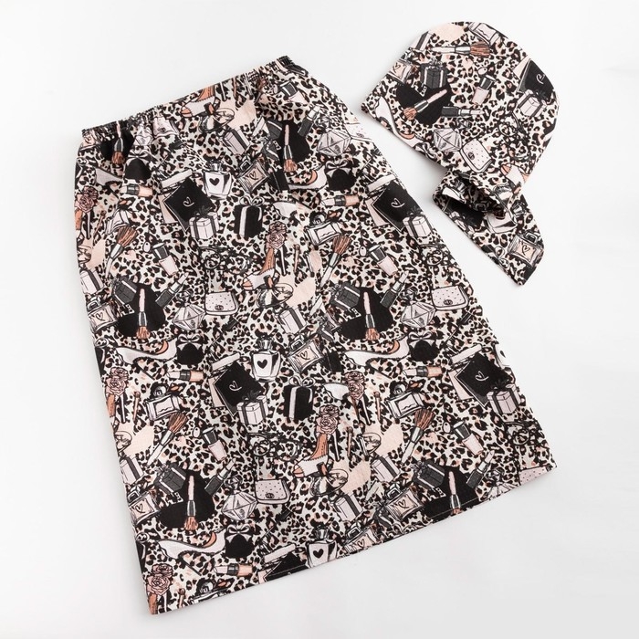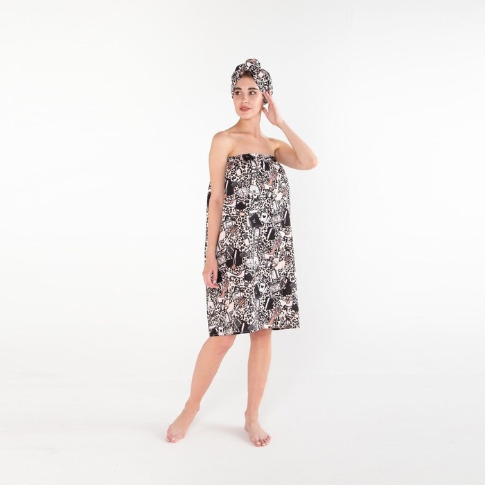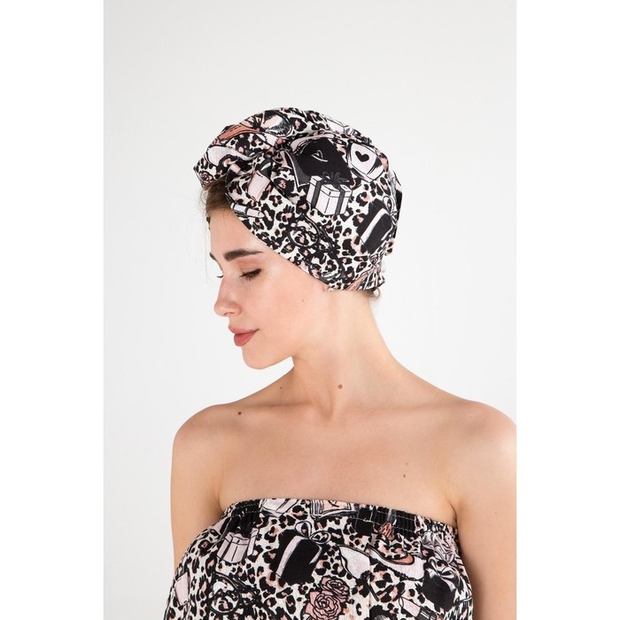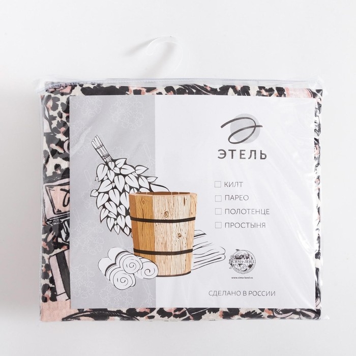 Набор для сауны Этель "Леопард" парео 80*144 см + чалма, вафля 200г/м2, 100% хл