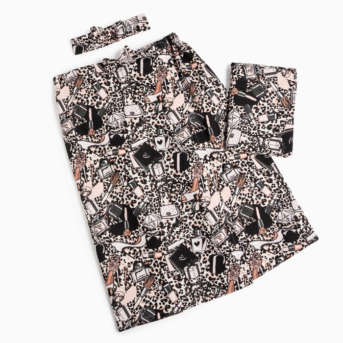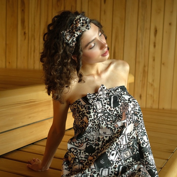 Набор для сауны Этель "Леопард" парео с бантиком+полотенце 80х150 см+повязка,100% хл