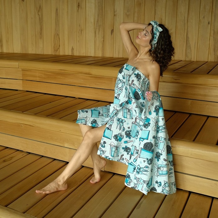 Набор для сауны Этель "Mint mood" парео с бантиком+полотенце 80х150 см+повязка,100% хл