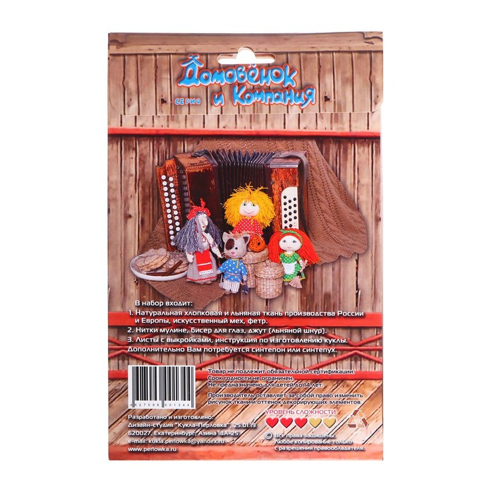 С набором для шитья из льна и хлопка у вас получится своими руками создать мягкую игрушку в виде Домового, которую можно использовать для украшения интерьера вашего. Внутри набора вы найдёте необходимые материалы и инструкцию, в которой подробно написано, как сделать игрушку.