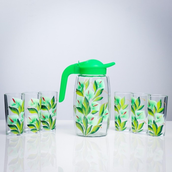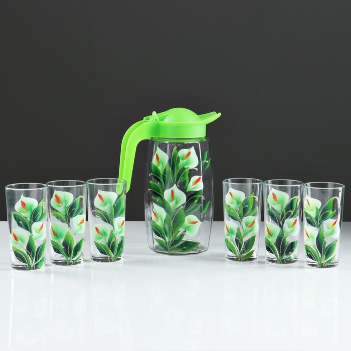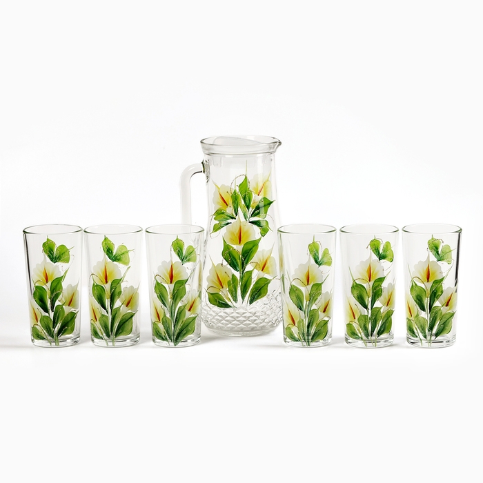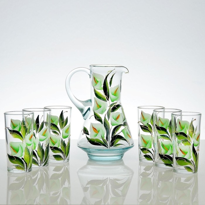Набор для сока "Каллы" художественная роспись, 6 стаканов 1250/200 мл