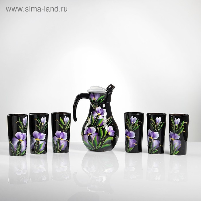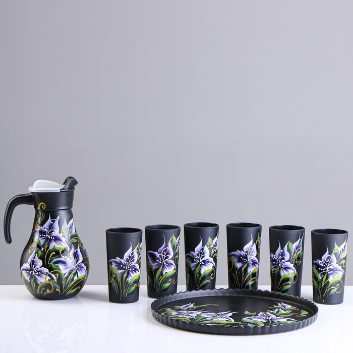 Набор для сока с подносом "Ирис" художественная роспись, 6 стаканов 1250/200 мл