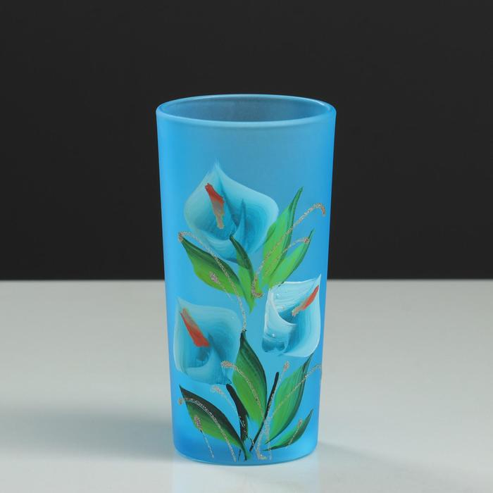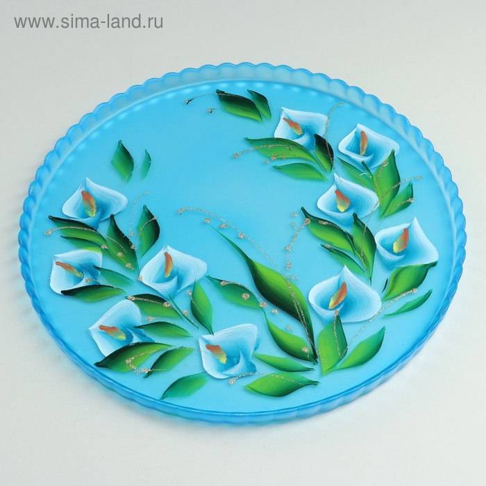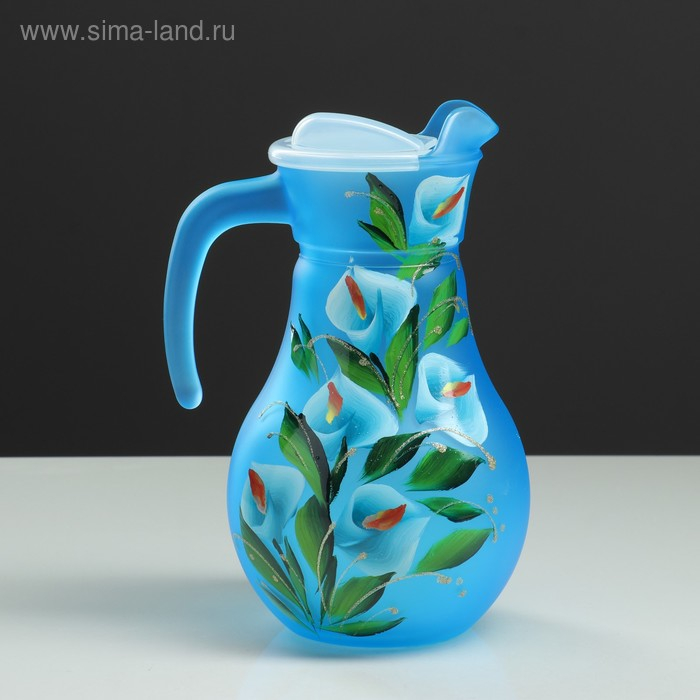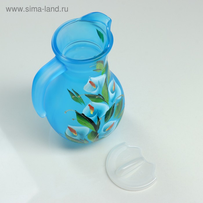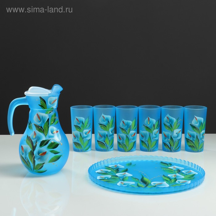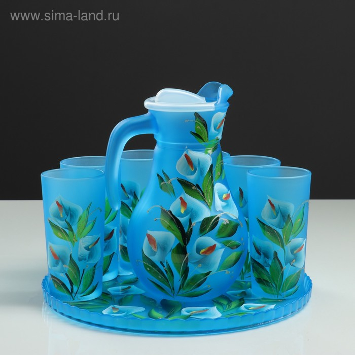 Набор для сока с подносом "Каллы" художественная роспись, 6 стаканов 1250/200 мл, синий