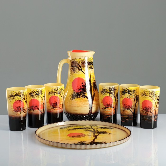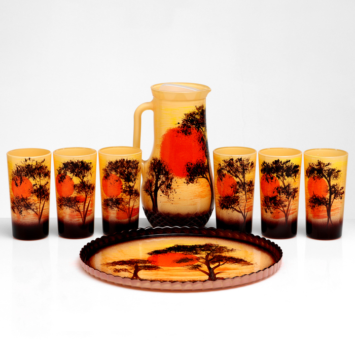 Набор для сока с подносом "Закат" художественная роспись, 6 стаканов 1250/200 мл