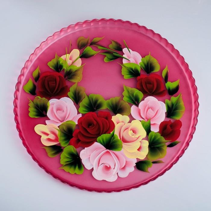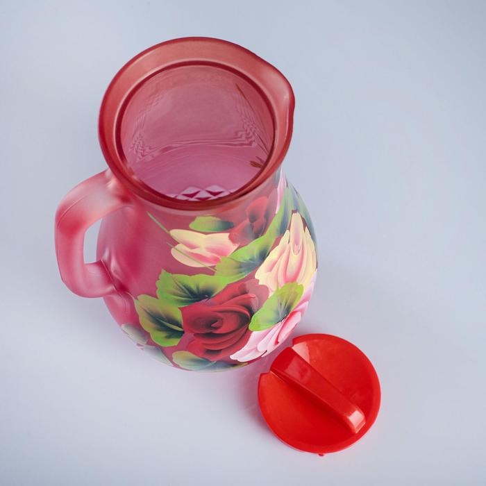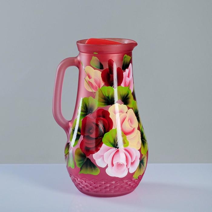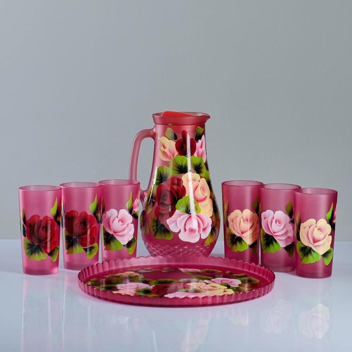 Набор для сока с подносом "Жостово" художественная роспись, 6 стаканов 1250/200 мл, красный