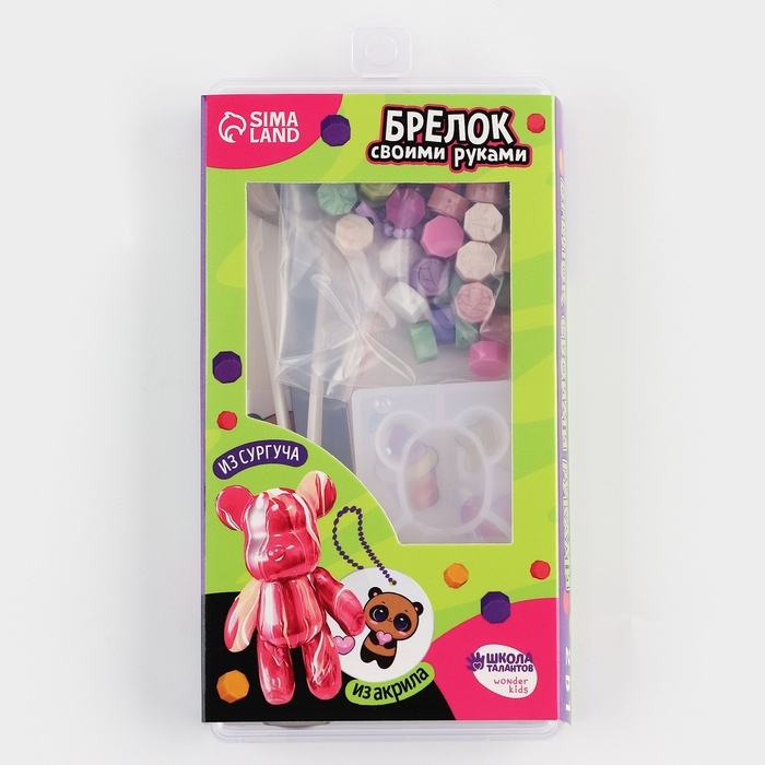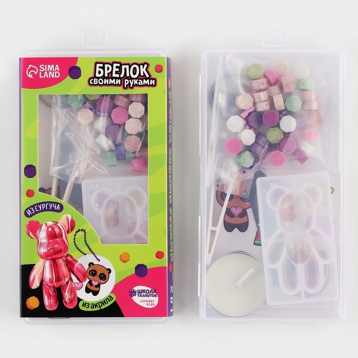 Этот набор не только позволит вашему ребенку проявить свою креативность, но и научит его новым техникам и работе с новыми материалами. Сургуч- это окрашенная плавкая смесь, состоящая из твердых смол. Его нужно расплавить над свечой и залить в молд, чтобы получить яркий брелок.