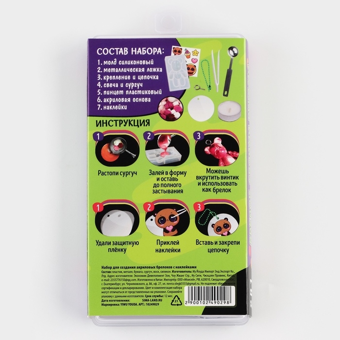 Набор для создания акриловых брелоков с наклейками и фигуркой из сургуча