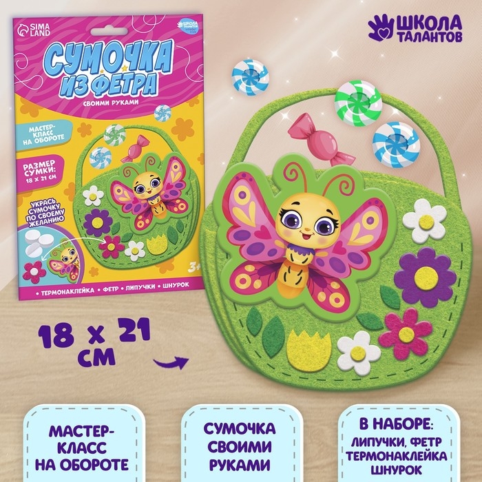 Набор для создания сумки из фетра «Бабочка» с термонаклейкой