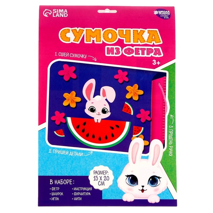 Набор для создания сумки из фетра «Зайка» с термонаклейкой