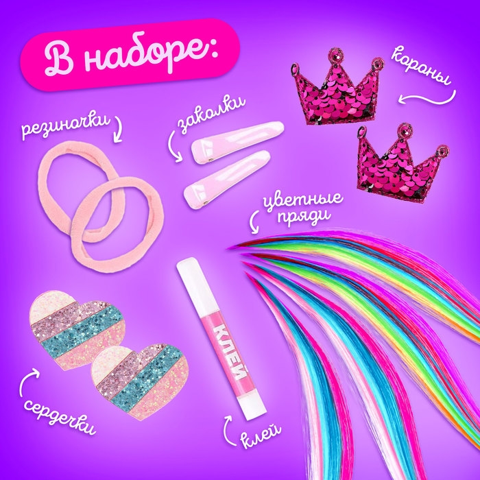 Набор для создания украшений Art Fashion: заколочки и резиночки с прядками, принцесса