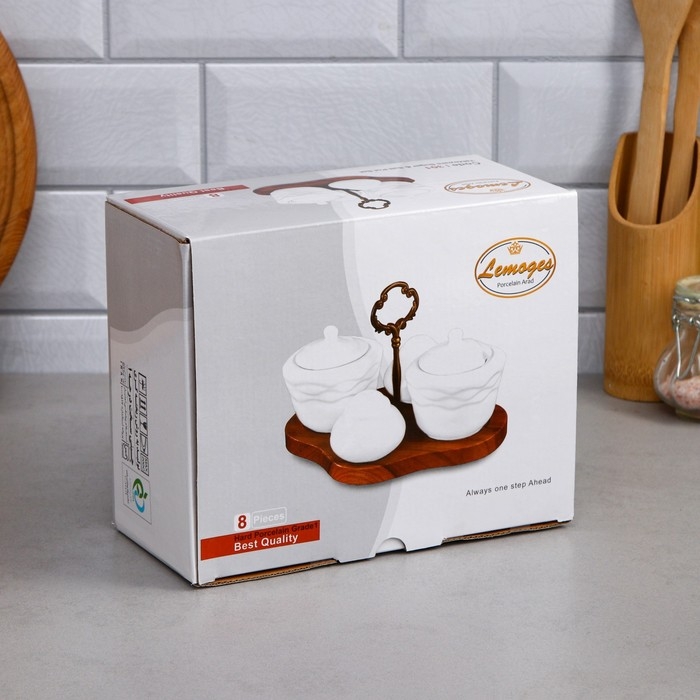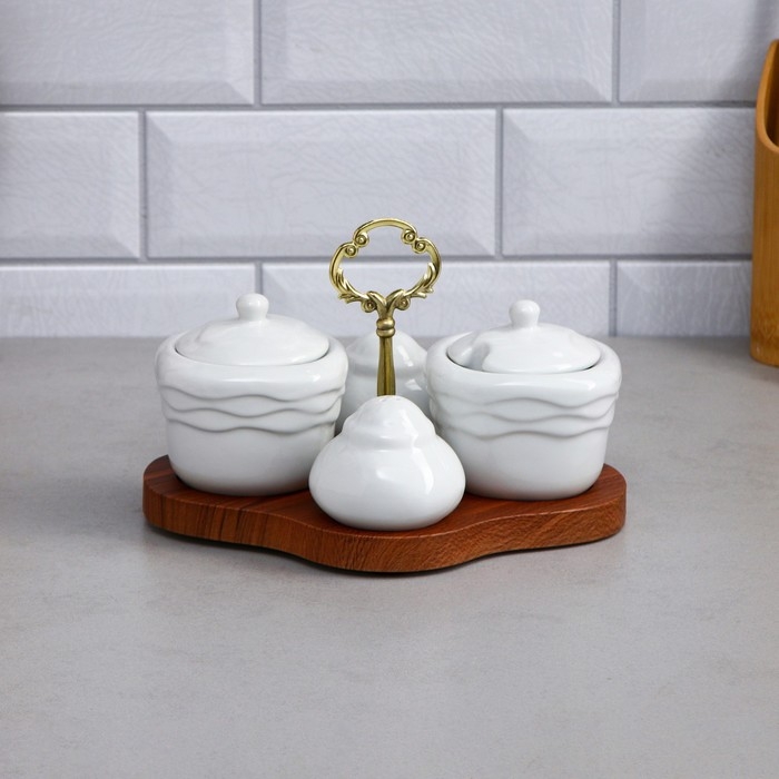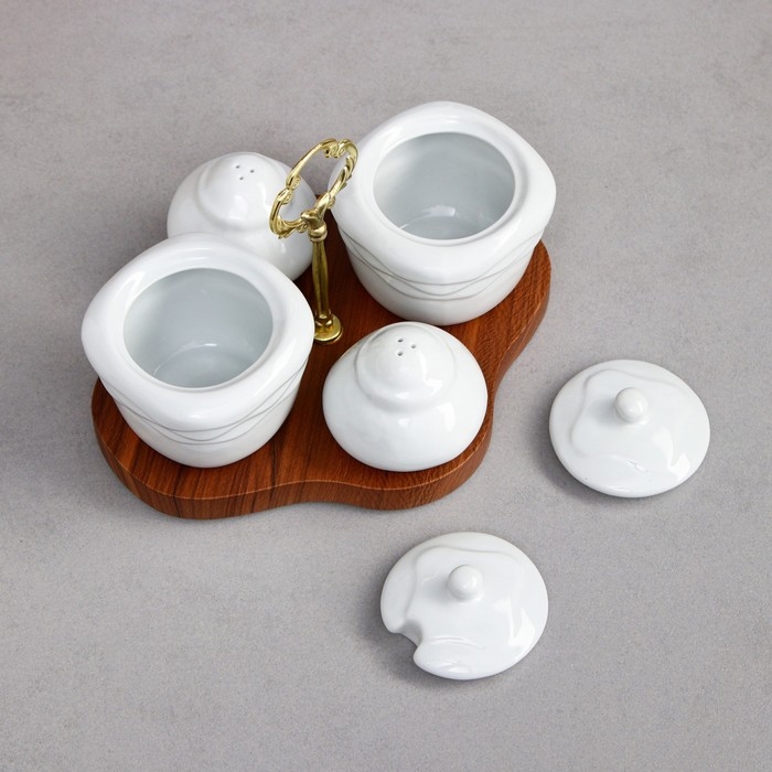 Набор для специй, 5 предметов: подставка, 2 горшочка, 2 ёмкости для специй, фарфор, Иран