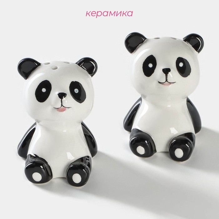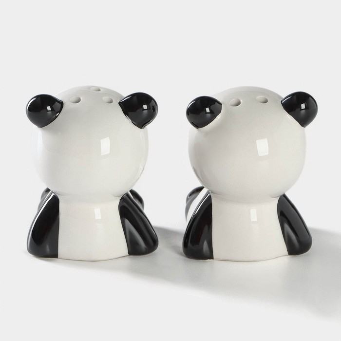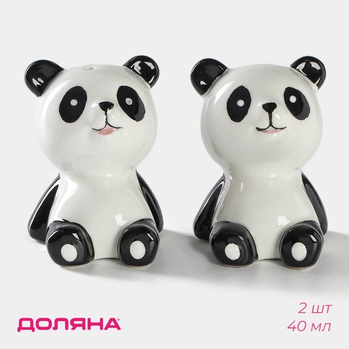 Набор для специй Доляна «Панда», 2 предмета: солонка 40 мл, перечница 40 мл, цвет белый и чёрный