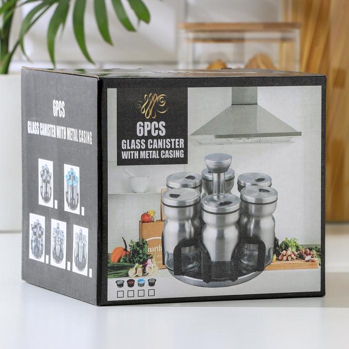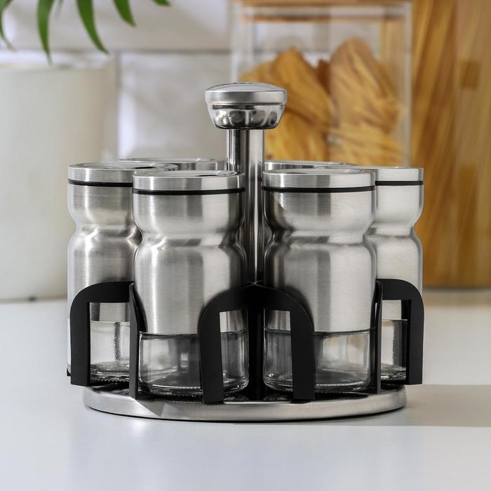 Набор для специй из стекла на подставке «Сияние», ёмкость, 5,5×10,5 см, 6 шт