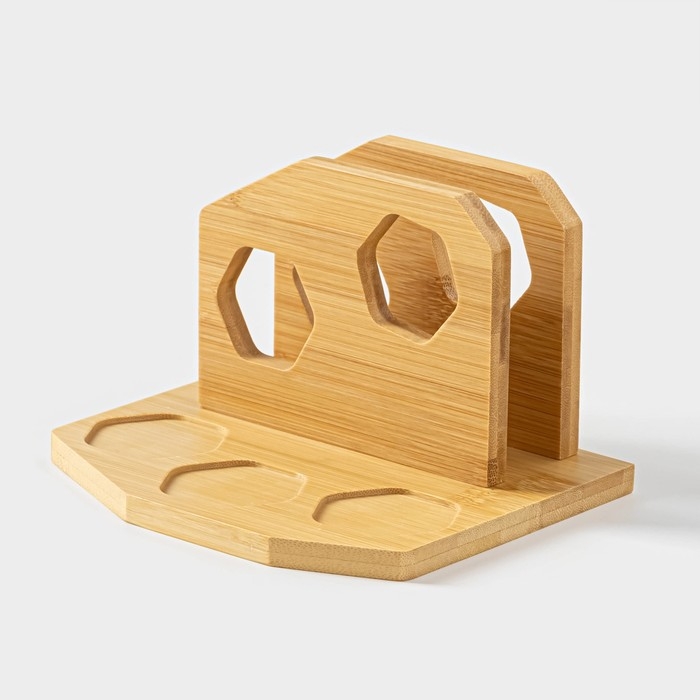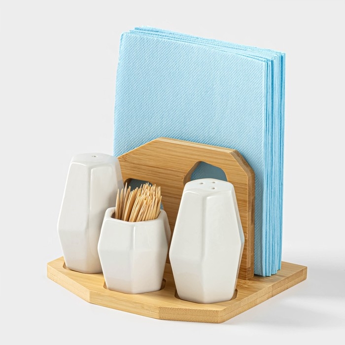 Набор для специй на деревянной подставке BellaTenero, 4 предмета: солонка 75 мл, перечница 75 мл, салфетница, ёмкость для зубочисток, цвет белый