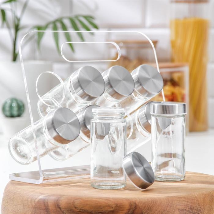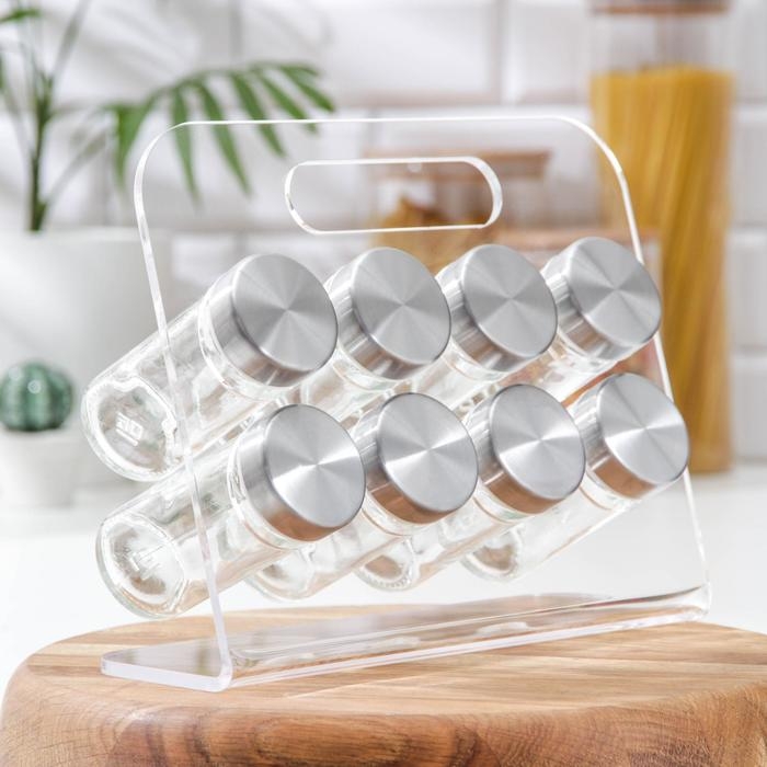 Набор для специй на подставке «Хай-тек», 16×16×16 см, ёмкость, 90 мл, 4×9,5 см, 8 шт