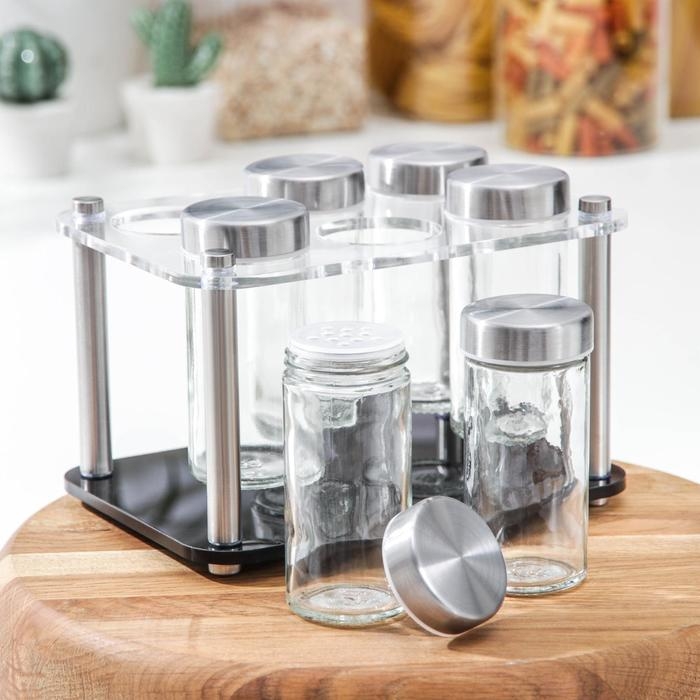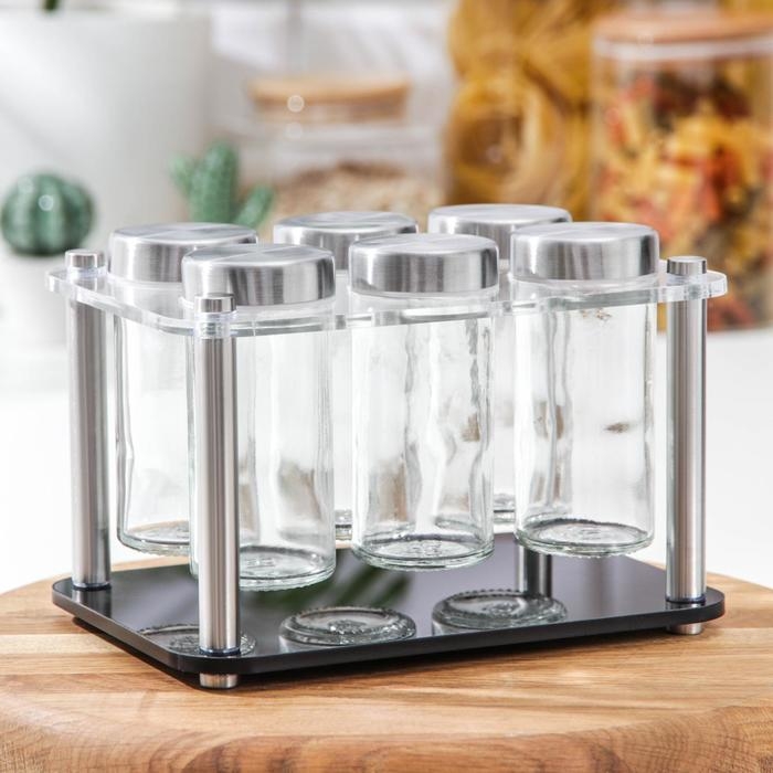 Набор для специй на подставке «Хай-тек», 19×21,5 см, 90 мл, 4×9,5 см, 6 шт