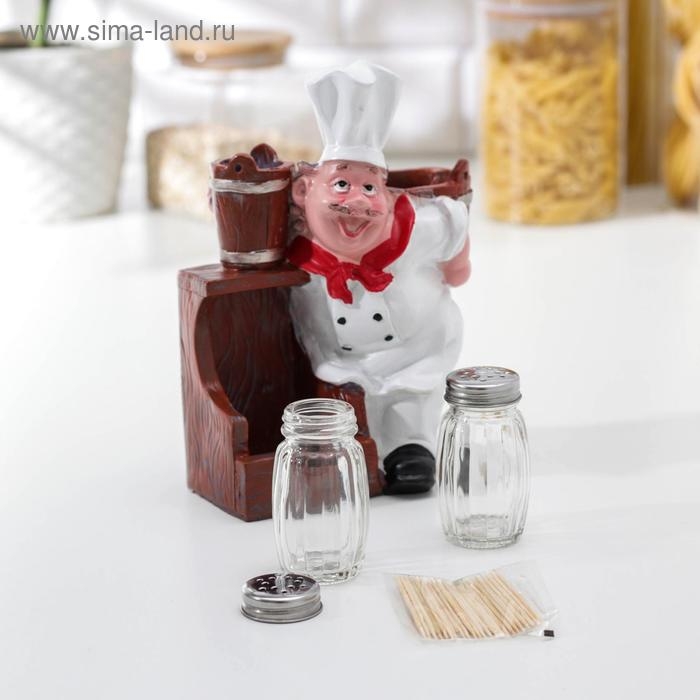 Набор для специй на подставке «Повар», 3 предмета: солонка 50 мл, перечница 50 мл, подставка, форма МИКС