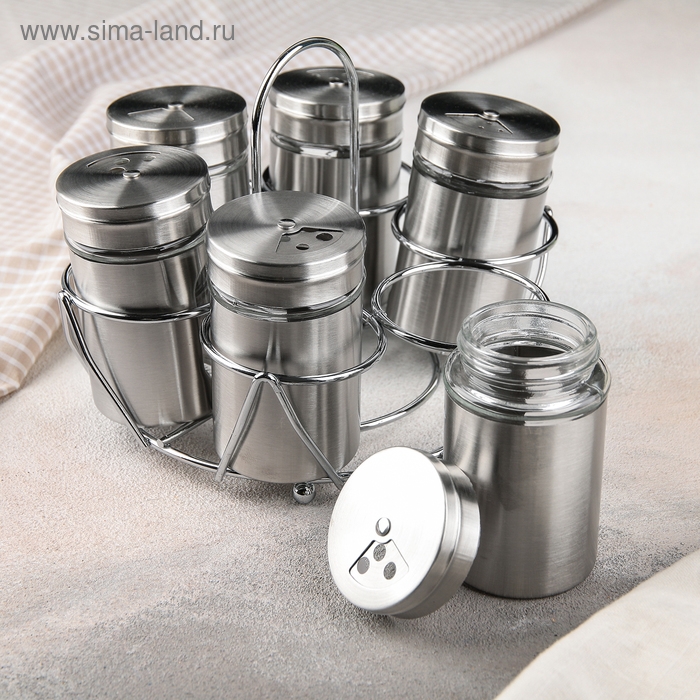 Набор для специй на подставке «Универсал», 15×12 см, 100 мл, 6 шт