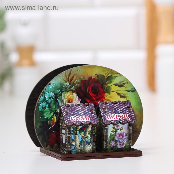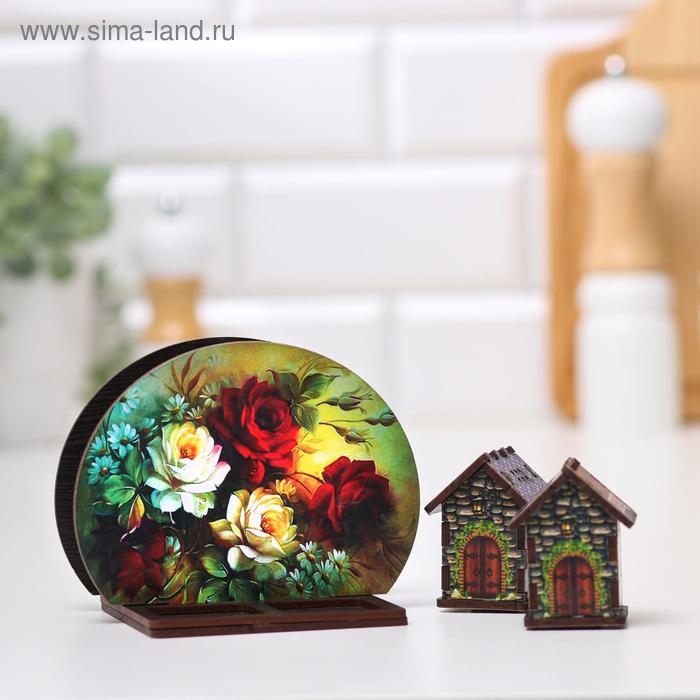 Набор для специй с салфетницей "Красные и белые розы", 13х10х10 см