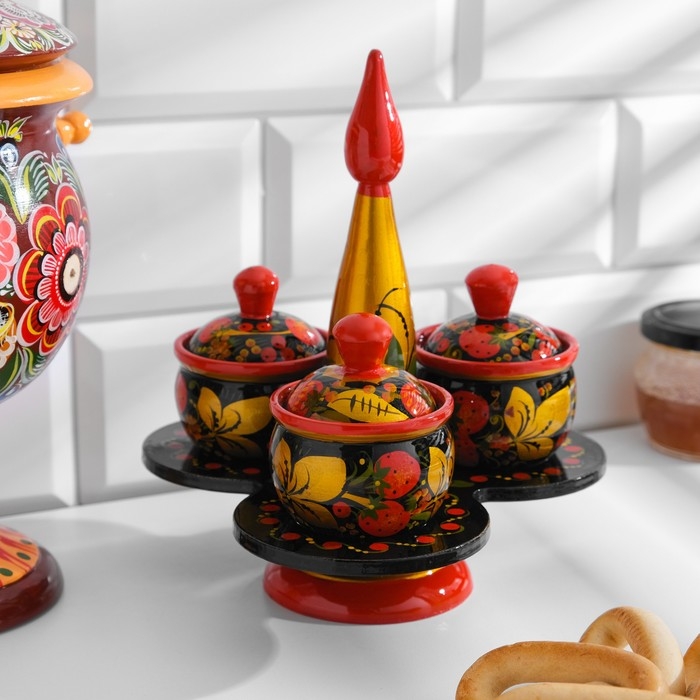 Набор для специй "Тройной" , емкости по 30мл, хохлома