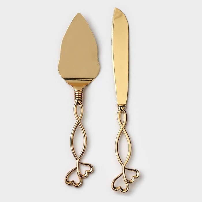 Набор для торта Elegance, 2 предмета: нож длина 28 см, лопатка длина 26 см, цвет золотой