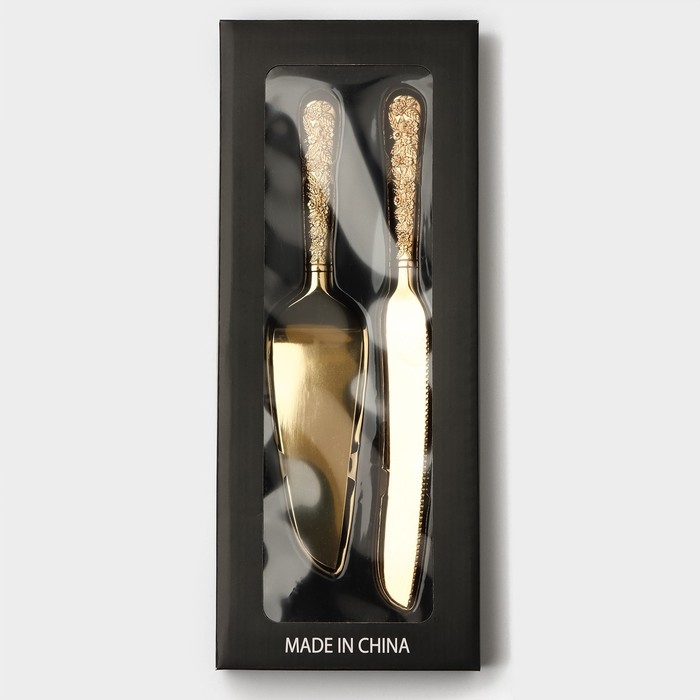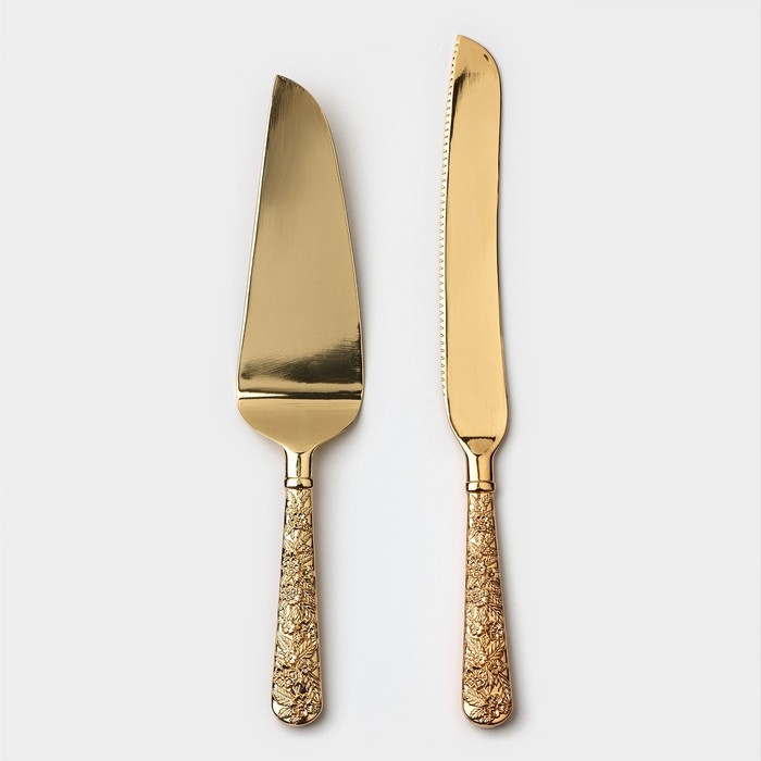 Набор для торта Goldy, 2 предмета: нож длина 27 см, лопатка длина 25 см, цвет золотой