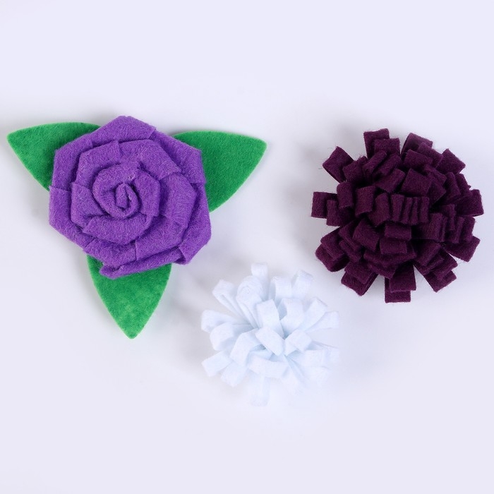 Набор из фетровых цветов с пластиковыми бусинами — это фигурный декор, который можно применить в различных сферах творчества.