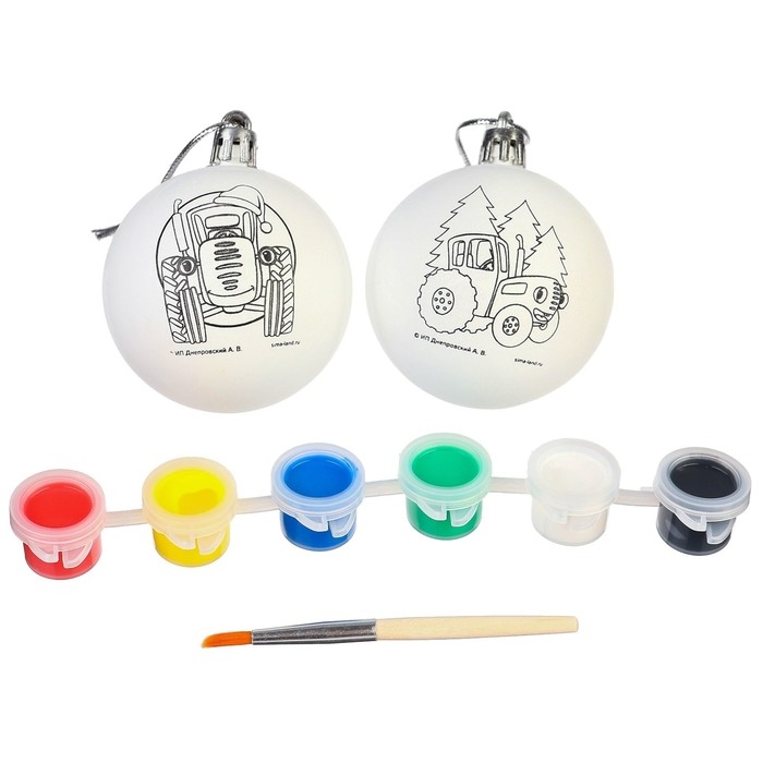 Набор для творчества на Новый год "Новогодний шар под раскраску", 2 штуки 5.5 см, Синий трактор