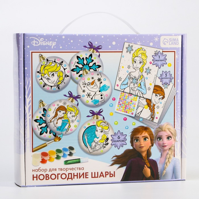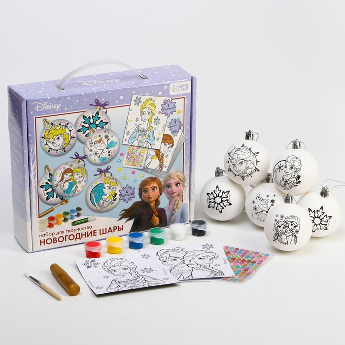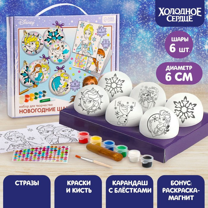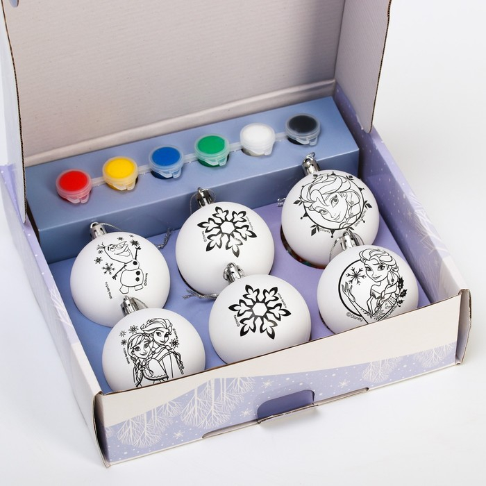 Набор для творчества на Новый год "Новогодний шар под раскраску", 6 штук 5.5 см, Холодное сердце