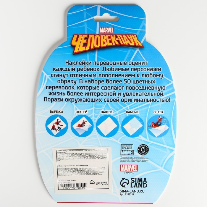 Набор для творчества «Наклейки переводные» Человек паук, 50 переводок