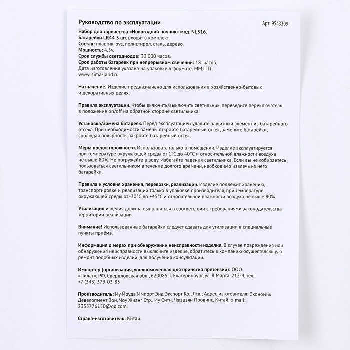 Страна изготовитель