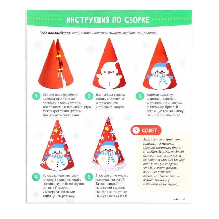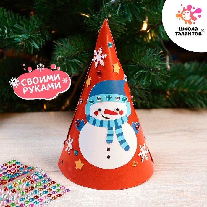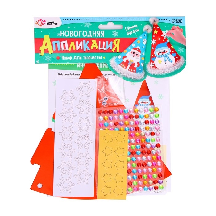 Набор для творчества «Новогодняя аппликация» позволит смастерить праздничный колпак из бумаги.