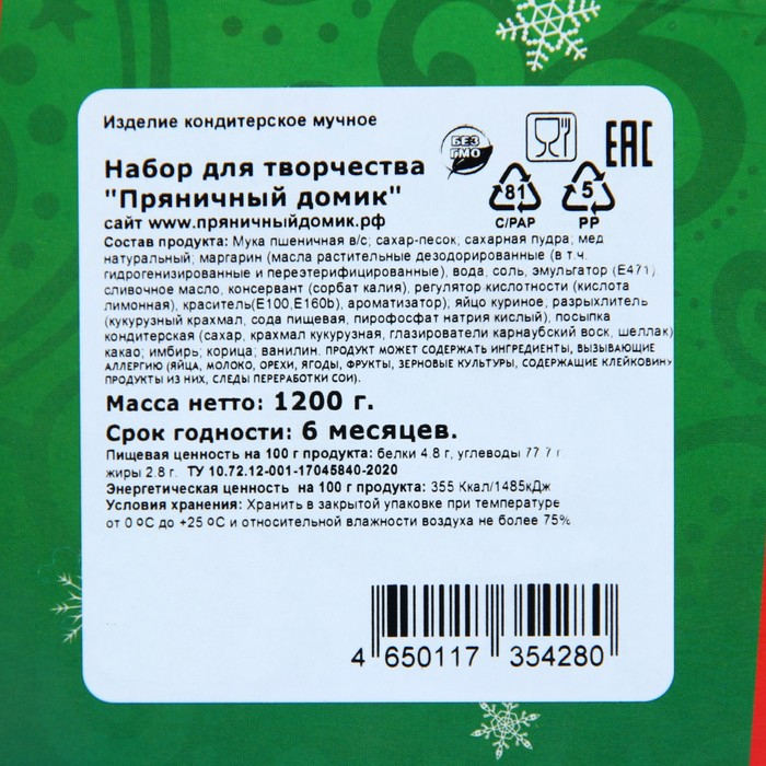 Набор для творчества "Пряничный домик", 1200 г