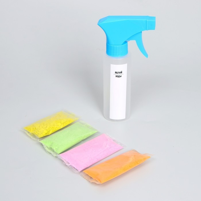 В наборе: дозатор с пульверизатором, 4 цветных меловых порошка, 1 пазл-трафарет, 3 мини-трафарета.