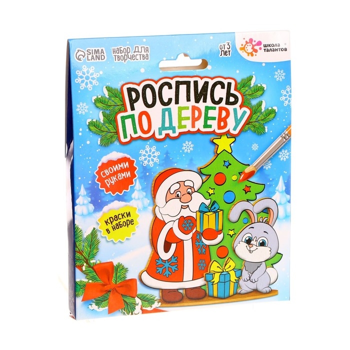 С набором для творчества «Роспись по дереву» у ребёнка получится замечательная новогодняя поделка, которую можно отнести в садик или подарить друзьям или родственникам.