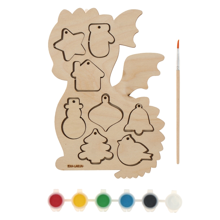 - В комплект входят деревянные заготовки , рамка-основа, краски и кисточка.